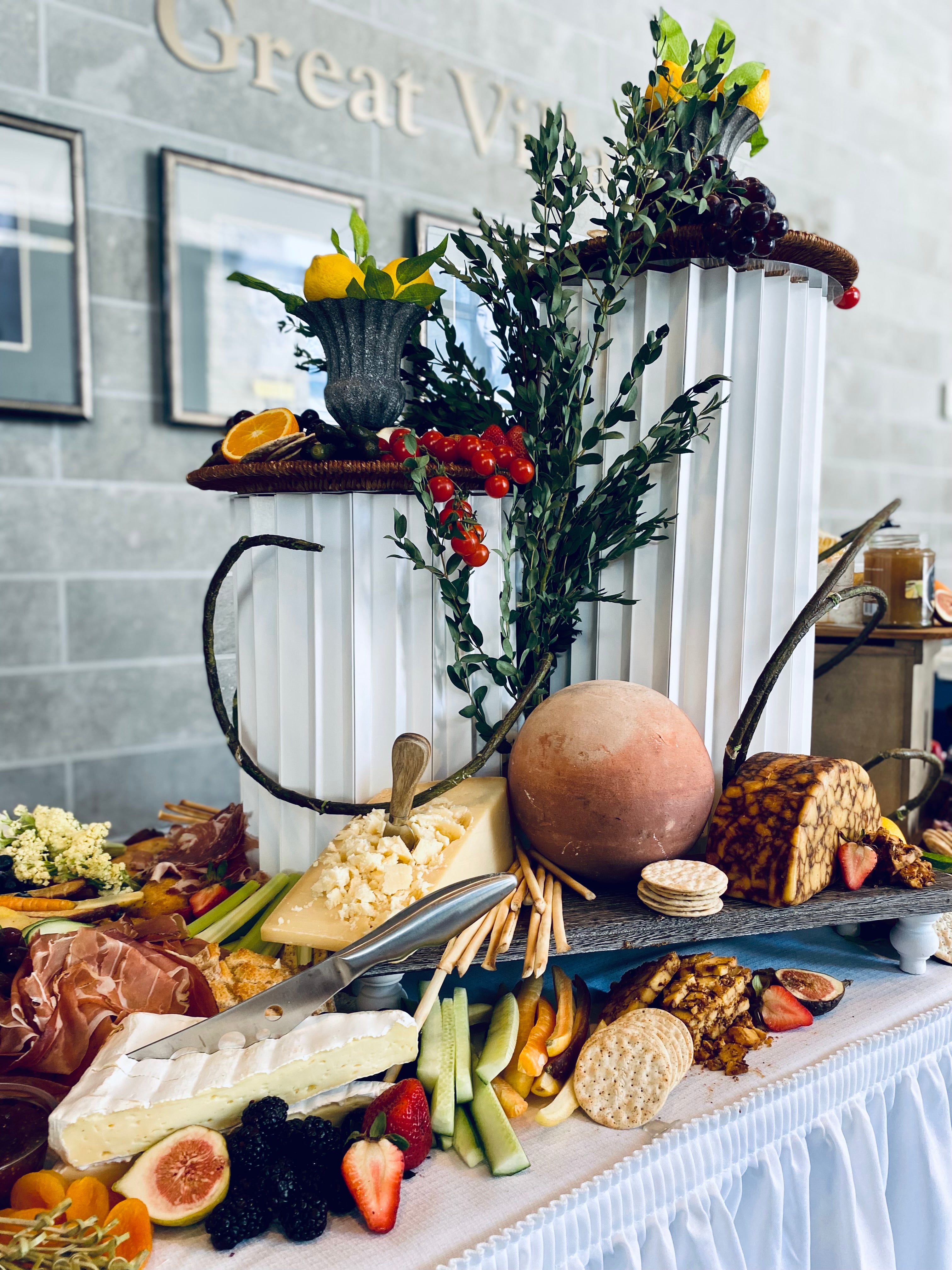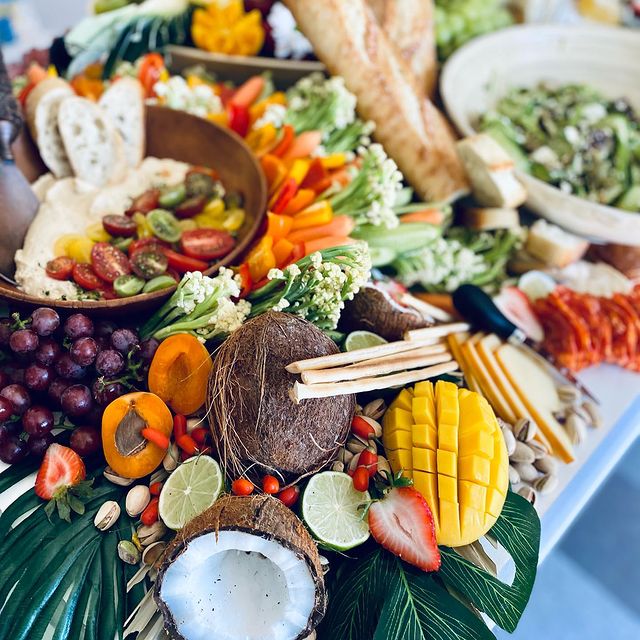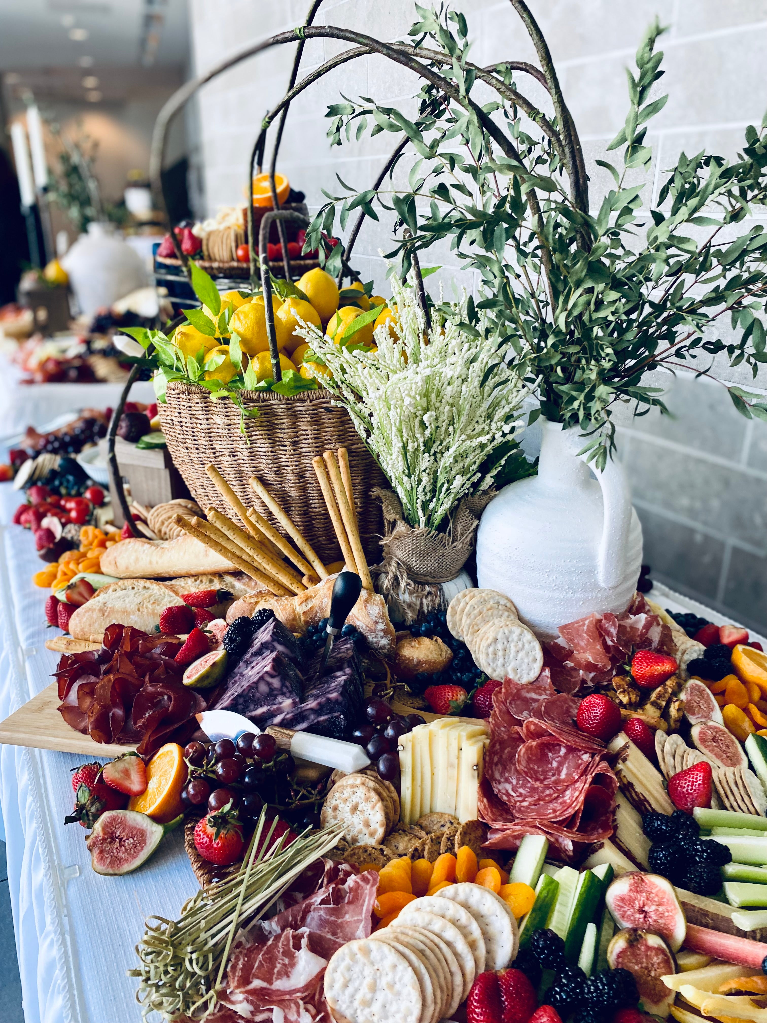 Fresh seasonal produce, fine cheeses, charcuterie, pate, salty snacks, artisan breads and crackers, local artisan preserves, olives and cornichons, nuts, dried fruit, wholesome dips and spreads, sweets and more, will be carefully styled into a work of art!